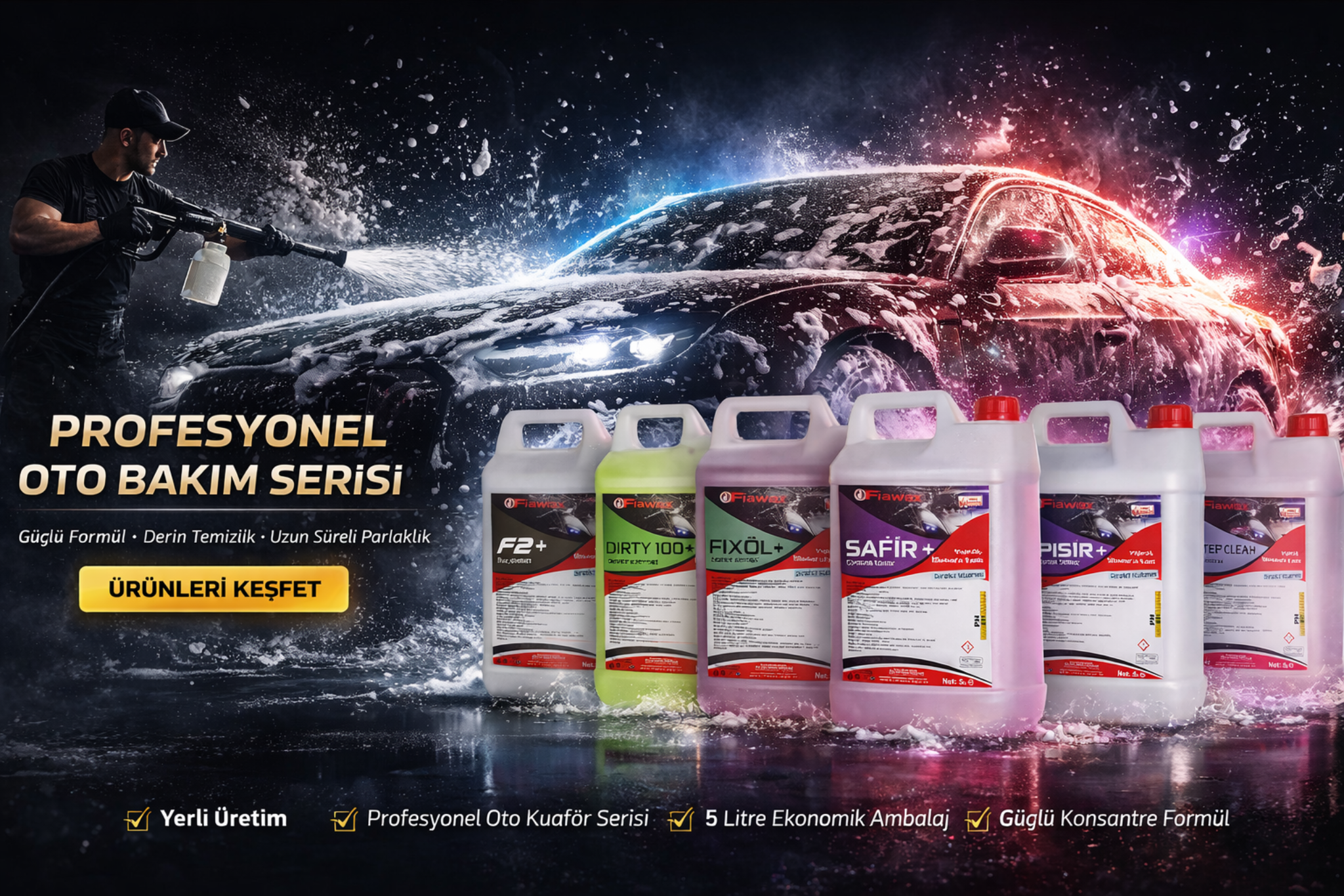 FİAWAX olarak araç bakımında profesyonel çözümler sunuyoruz. Ürünlerimiz hem bireysel kullanıcılar hem de oto yıkama işletmeleri için özel olarak geliştirilmiştir.