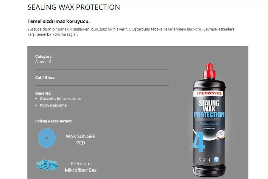 Menzerna Sealing Wax Protect - Boya Koruyucu Cila 250ml
