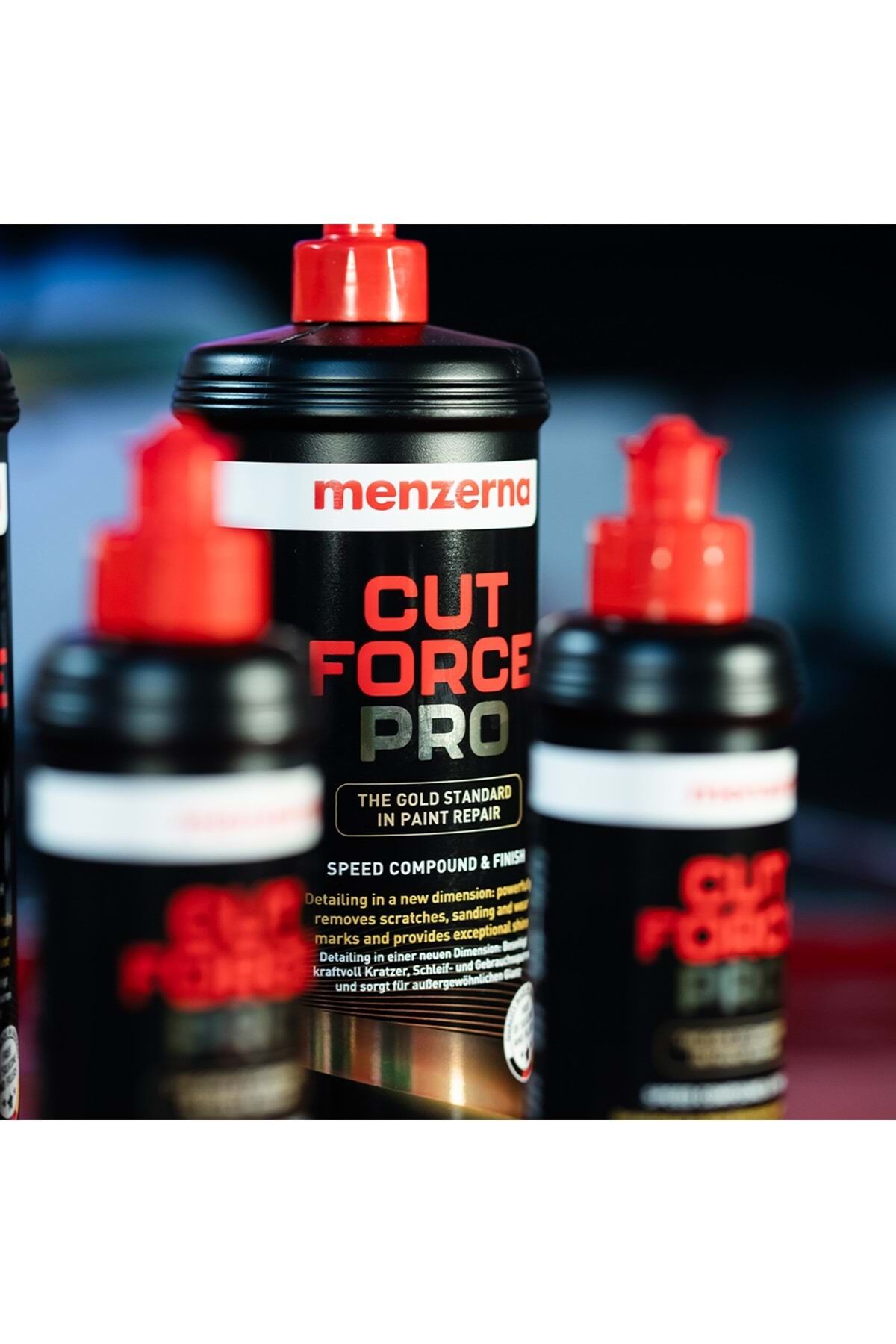 Çizik giderme ve parlatmada yeni ALTIN standartınız.; Menzerna Cut Force PRO! Sınıfının en yüksek performanslı araç pastası.; Yüzeydeki ağır çizikleri, zımpara izlerini ve deformasyonu rekor sürede, mükemmel bir sonuçla bitirir.; Menzerna laboratuarlarında üretilen bu en yenilikçi polisaj ve parlatma teknolojisi, yüzeylerde kusursuz bir çizik gidermenin yanında kalın pastadan beklenmeyecek göz kamaştırıcı bir parlaklık da bırakır.; Yeni teknolojimiz polisaj sürecini yepyeni bir seviyeye taşırken, en ağır deformeli yüzeylerde dahil olağanüstü bir yenileme ve derin bir parlatma sonuçları verir.; Menzerna Cut Force PRO artırılmış çizik giderme performansı ile en zorlu araçlarda bile kalıcı çözüm sunar.; Hızlandırılmış en yeni molekül yapısı ile uygulama sürenizi kısaltır.; Keçe ile kullanımda dahil arkasında neredeyse sıfır deformasyon bırakır.; Uygun aplikatörler ve devirde kullanıldığında Menzerna Cut Force PRO toz yapmaz.; Kokusu yoktur.; Kapalı alanlarda dahil rahatça çalışabilirsiniz.; Tüm Menzerna pasta ürünlerinde olduğu gibi Menzerna Cut Force Pro ürünü de “silikon, dolgu, örtücü ve kapatıcı madde” içermemektedir.; Hacim: 250 ml Avantajlar: • Rekor sürede mükemmel çizik giderme • Göz alıcı, derin parlaklık • En sert verniklerde dahil olağanüstü sonuç • Yüksek verimlilik ve zaman tasarrufu • Silikon ve dolgu içermez Kesme / Parlaklık: 9 / 9 1. Adım : Kalın Pasta 2. Adım : İnce Pasta 3. Adım : Hare Giderici Cila Uygulama Aracı: • Kuzu Postu Keçe • Sert Sünger Ped • Orta Sert Sünger Ped Kullanım: Rotary veya Orbital