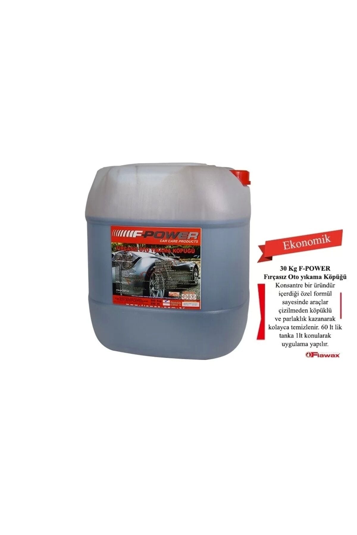 Fiawax f-Power fırçasız oto yıkama köpüğü 30 kg Fiawax fırçasız oto yıkama maddesi ile yapacağınız araç temizliği sayesinde aracınız fırça çiziğine maruz kalmayacaktır. ; Kullanım şekli: Fiawax fırçasız oto yıkama maddesi, 60 lt'lik köpük tankınızın içine 1lt ilave ederek üzeri su ile tamamlanır. ; Tanka hava verme şartı ile köpürmesini sağladıktan sonra aracınız çok kirli değilse ön yıkamasız direkt köpük sıkıp bir kaç dakika bekledikten sonra Tazyikli su ile durulama yapılarak silinir. ; Köpük sıkılmadan önce aracınızın sıcak olmamasına dikkat ediniz. ; Bu ürün, boyası solmuş, yıpranmış, verniği atmış, silerken beze boyası çıkan, aynı zamanda çok sıcak araçlara uygulanmaz. ; Ayrıca güneş altında da uygulama yapılmaz. ; Aksi takdirde ürünün aktif maddesi yüksek olduğu için lekeler oluşturabilir.;