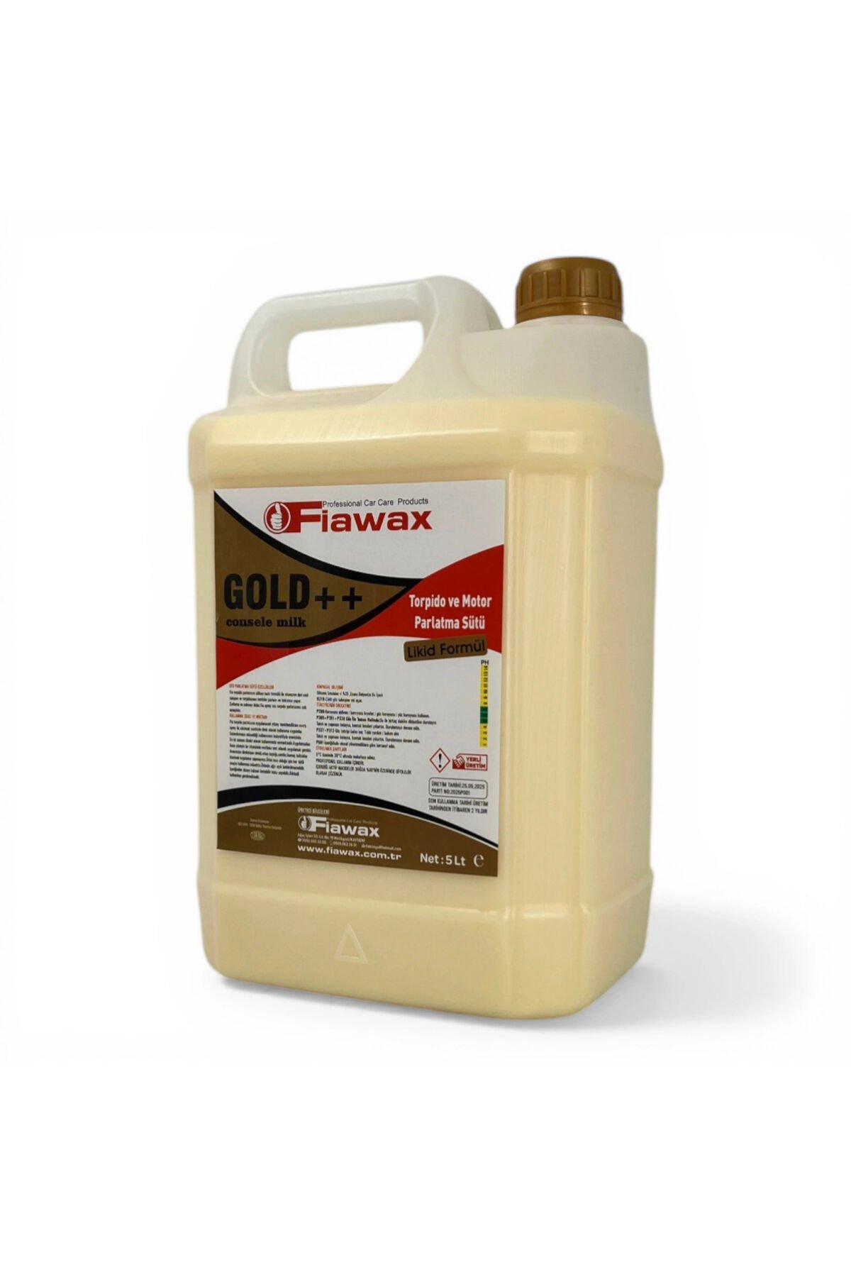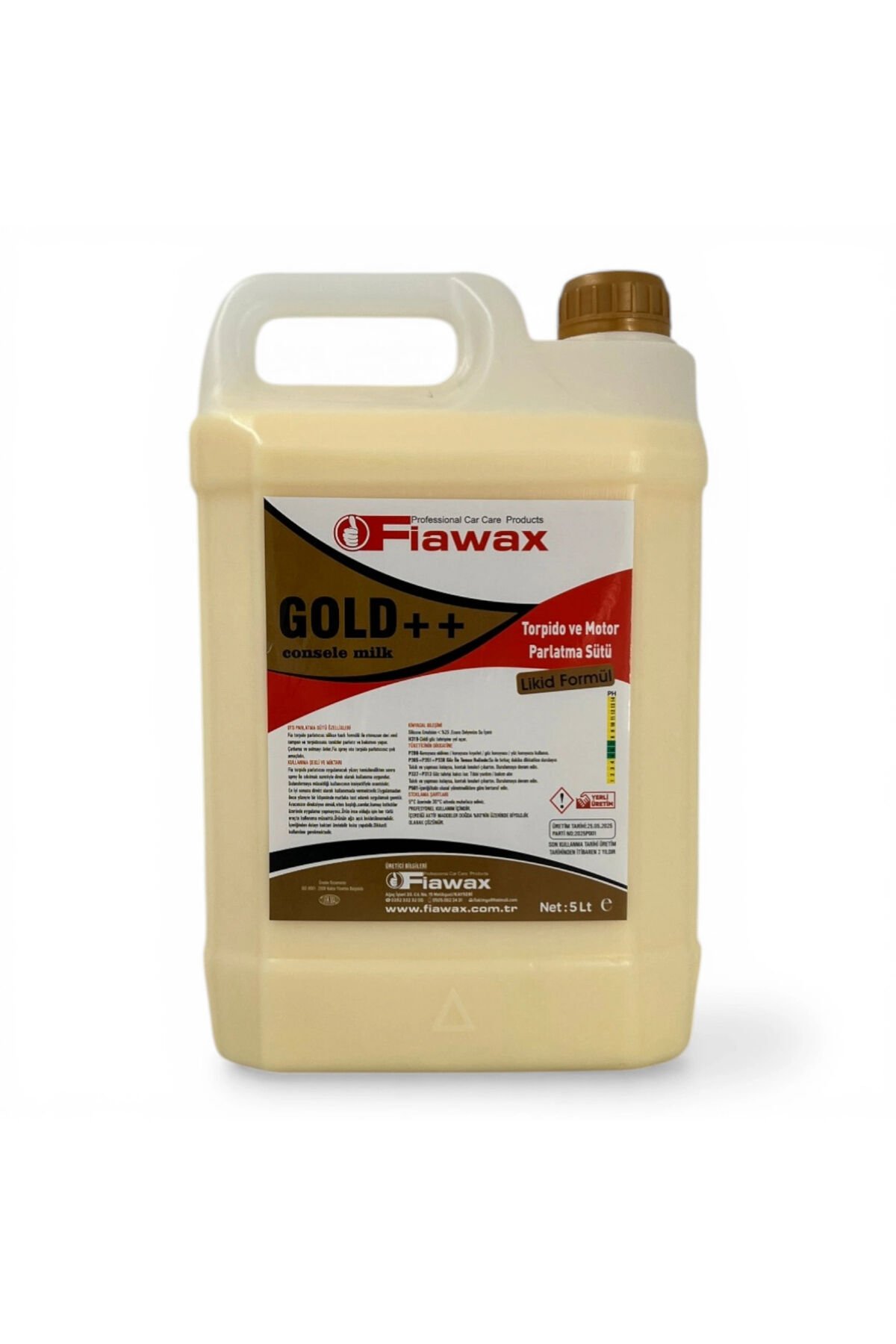 FİAWAX TORPİDO PARLATMA SÜTÜ 5 KG (GOLD) Silikon bazlı formülü ile otonuzun torpidosunu, plastik, vinil, deri ve kauçuk yüzeylerini temizler, parlatır ve bakımını yapar; Çatlama ve solmayı önler; Güneşin zararlı UV ışınlarına karşı tam bir koruma sağlar; Yağlı tabaka oluşturmaz; Yeni formülü ile uzun süre etkilidir; Kullanım Şekli: Fiawax Torpido Parlatıcısı uygulanacak yüzey temizlendikten sonra, sprey ile sıkılmak suretiyle 1/1 veya 1/2 oranında sulandırılarak kullanıma uygundur; Sulandırmaya müsaitliği kullanıcının inisiyatifiyle orantılıdır; Uygulamadan önce yüzeyin bir köşesinde mutlaka test edilmelidir; Aracınızın direksiyon simidi, vites başlığı, camları ve kumaş koltukları üzerinde uygulama yapmayınız; Ürün ince olduğu için her türlü araçta kullanıma müsaittir; Ürünün ağzı açık bekletilmemelidir; İçeriğinden dolayı bakteri üretebilir, koku yapabilir; Dikkatli kullanılması gerekmektedir;