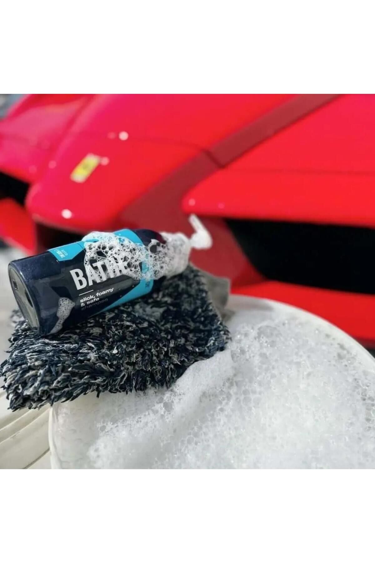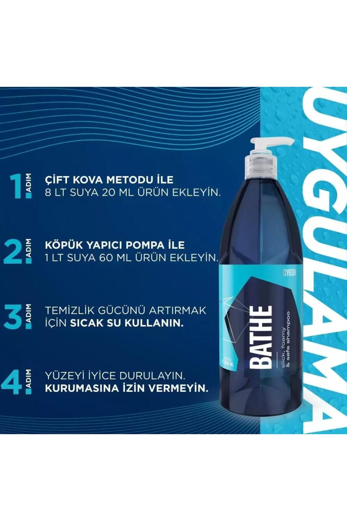 Araç yüzeyindeki çiziklerin %90'ının yanlış yıkama sonucu oluştuğunu biliyor muydunuz? Ancak çift kova yıkama yöntemi, GYEON Smoothie/Washpad gibi yumuşak eldivenlerle veya Foam Lance & köpük yapıcı pompa kullanarak aracınızı kusursuzca yıkayarak bu sorunu ortadan kaldırabilirsiniz.; En önemli bileşenlerden biri de, eldivenin boyanın yüzeyi üzerinde kolayca kaymasını sağlayan kayganlık özelliğidir.; Daha iyi bir kayganlık, aracınızın boyasını korumak ve yeni kusurların oluşmasını önlemek için gereklidir.; İşte tam burada GYEON Q²M Bathe şampuanın ultra kaygan yapısı devreye giriyor! GYEON Q²M Bathe Nötr PH Cilalı Araç Yıkama Şampuanı, kaplamalı/korumalı araç yüzeylerini korurken temizlemek için özel olarak tasarlanmış en iyi oto yıkama şampuanıdır! Yüksek konsantre formülü sayesinde hem çok ekonomik hem çok verimlidir.; Jel formülü suda kolayca çözünerek muhteşem derinlemesine bir temizlik sağlar ve hoş bir koku bırakır.; GYEON Q²M Bathe, yüksek temizleme gücünün yanında seramik, ppf kaplamaları ya da boya korumalara zarar vermeyecek kadar yumuşaktır.; Ayrıca pH nötr olduğundan, nikel/krom kaplamalı veya çok parlak parçalar gibi hassas yüzeylerin bozulmasına neden olmaz.; GYEON Q²M Bathe, her aracın günlük bakım için mükemmel bir seçimdir.; Yüksek köpük ve güvenli temizleme gücü, her türlü araçta kullanım kolaylığı sağlar.; Seramik kaplama, wax ve boya koruma gibi ürünlerin yüzeylerdeki parlaklığını artırır.; Aracınızda koruma yoksa bile aracınızın ışıl ışıl yüksek yansımalı ve parlaklıkta görünmesini sağlar.; Kapasite: 500 ml Tüketim: 15-20 ml / araç Kullanım yeri: Tüm araç yüzeyleri NASIL KULLANILIR? • Çift Kova Yöntemi ile; Kovaya 20ml Q²M BATHE ekleyerek yıkama eldiveniniz ile köpürtün.; • Köpük Yapıcı Pompa ile; 1 litre su içerisine 3 pompa ürün ekleyin.; • Foam Lance ile; 1 litre su içerisine 4 pompa ürün ekleyin.; İPUCU: Ürünün temizlik gücünü artırmak için sıcak suda seyreltebilirsiniz.