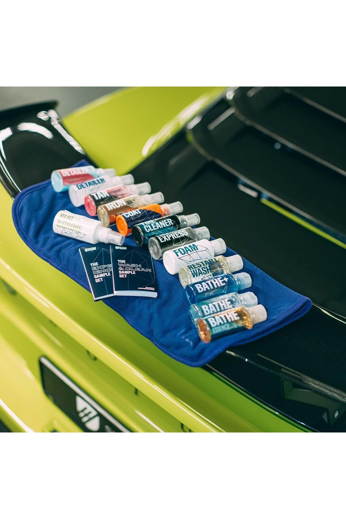 İkonik numune setlerinde paketlenmiş en iyi GYEON ürünlerinin tümü.; Ürünlerimizle ilk kez tanışıyorsanız veya bunları istediğiniz zaman istediğiniz yere götürmek istiyorsanız, Q²M Experience Setleri, GYEON’un tüm özelliklerinin ideal boyutta olan bir çeşididir.; WASH & CLEAN SET İÇERİĞİ: Q²M Bathe, Q²M Bathe+, Q²M BatheEssence, Q²M RestartWash, Q²M Foam 2021, Q²M Iron, Q²M Tar, Q²M Bug&Grime, Q²M WetCoat Hacim: 80 ml x 9 adet ürün